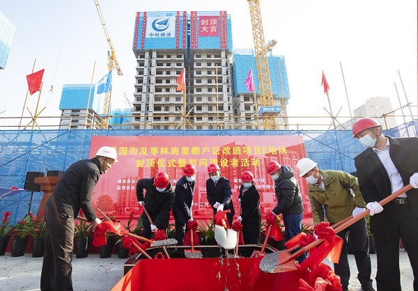 12月22日,伴随着最后一方混凝土浇筑到位,项目建设、监理、设计等相关单位负责人及集团公司领导的共同见证下,华体会官方版网站登录入口承建的菜园街及枣林南里棚户区改造项目喜迎主体结构封顶。